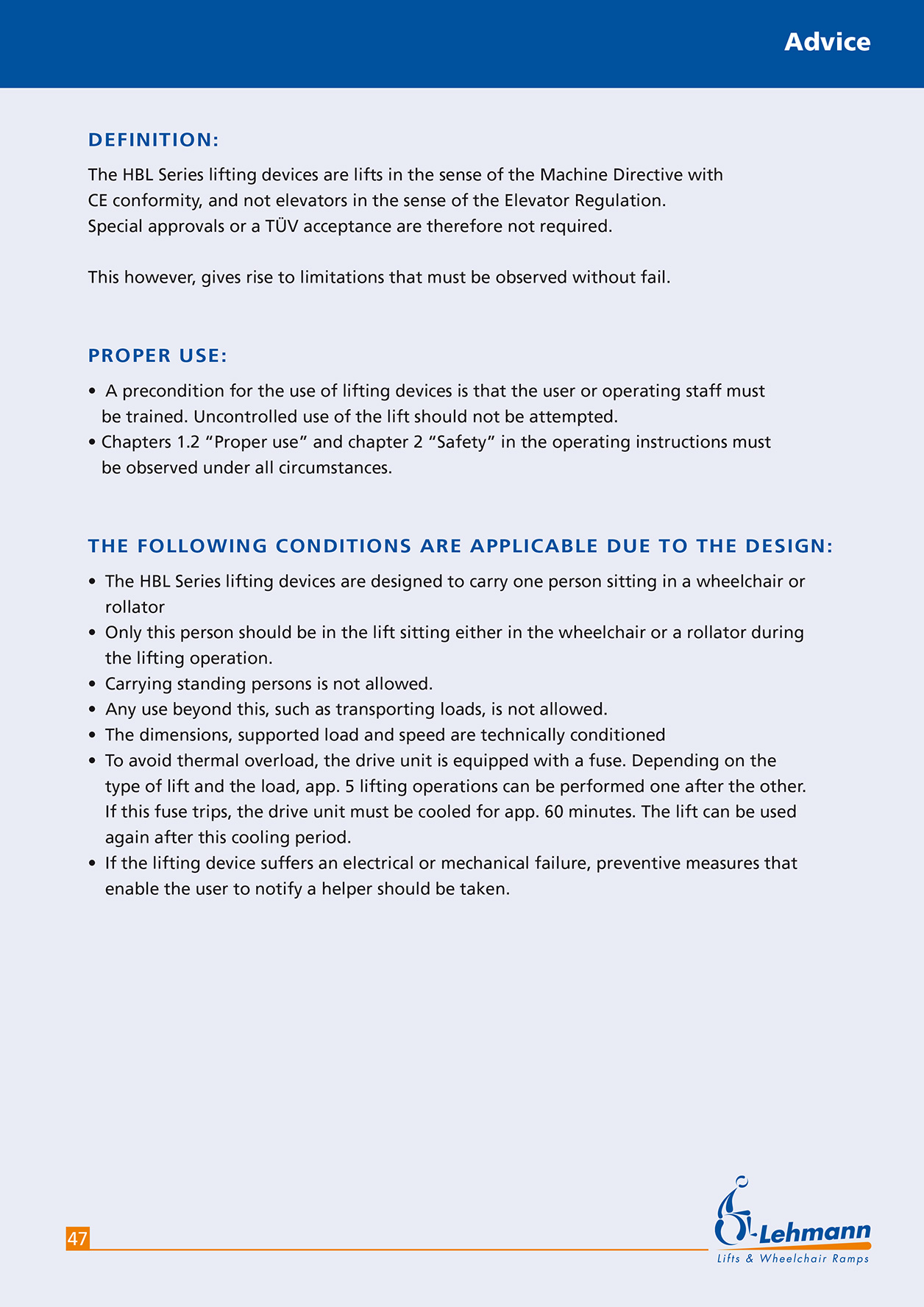 This is the HTML version of Lifting devices and wheelchair ramps Page 47